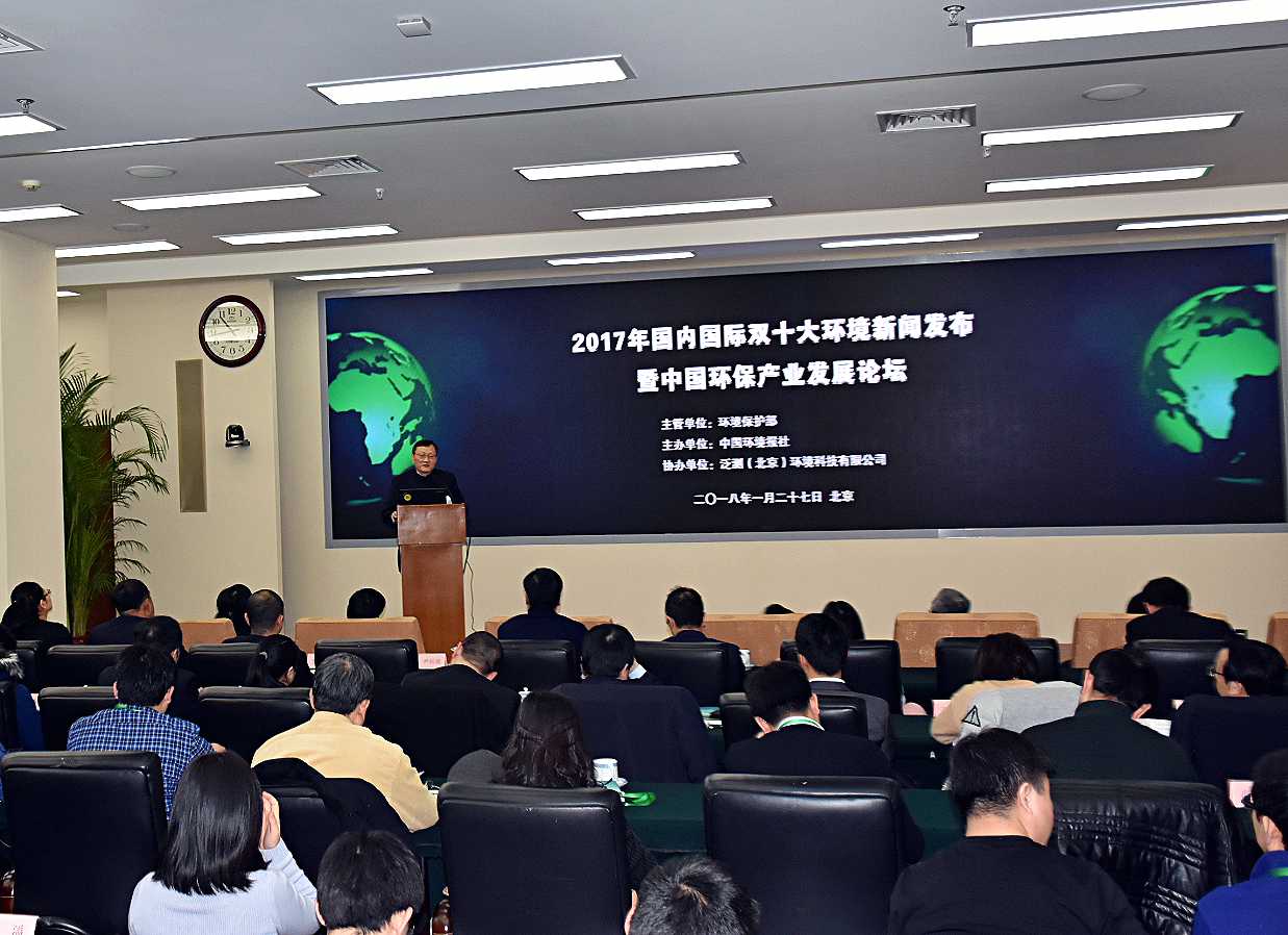 1月27日,由中國環(huán)境報社主辦的2017年國內國際雙十大環(huán)境新聞發(fā)布暨中國環(huán)保產業(yè)發(fā)展論壇在北京舉行。來自環(huán)境保護部門、環(huán)境治理企業(yè)、工業(yè)企業(yè)代表,及金融界人士、媒體共計120余人出席會議。