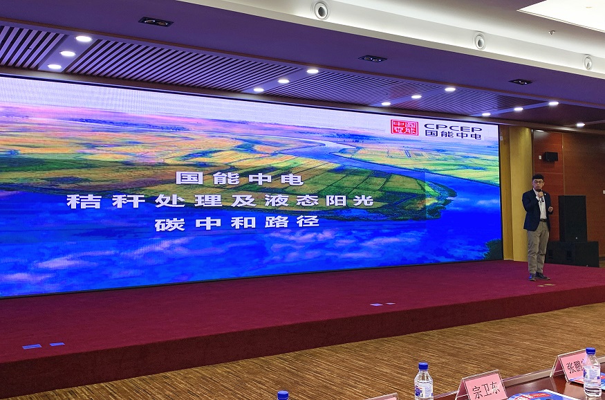 令人驚喜的是,國能中電多項綠色低碳技術和多個精品項目集中亮相本次展會。尤其是風光生物質(zhì)聯(lián)合制儲氫(液態(tài)陽光)一體化碳中和技術的推出,引起了業(yè)界專家和現(xiàn)場觀眾的極大興趣,吸引了眾多的產(chǎn)業(yè)孵化項目專家以及技術相關方前來交流,多家媒體記者進行了采訪報道。在同期舉辦的高峰論壇上,國能中電以“秸稈處理及液態(tài)陽光碳中和路徑”為主題,圍繞秸稈綜合利用與風光生物質(zhì)聯(lián)合制儲氫(液態(tài)陽光)技術進行了專場推介。